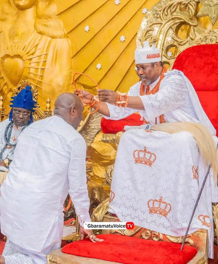 The title was conferred by His Royal Majesty, King Oboro Gbaraun II, Aketekpe Agadagba, the Pere of Gbaramatu Kingdom, during a grand traditional ceremony held at the royal palace. The conferment, witnessed by prominent sons and daughters of the Ijaw nation, reflects Pondi’s outstanding record of selfless service to Gbaramatu Kingdom, the wider Ijaw nation, and the Niger Delta at large.